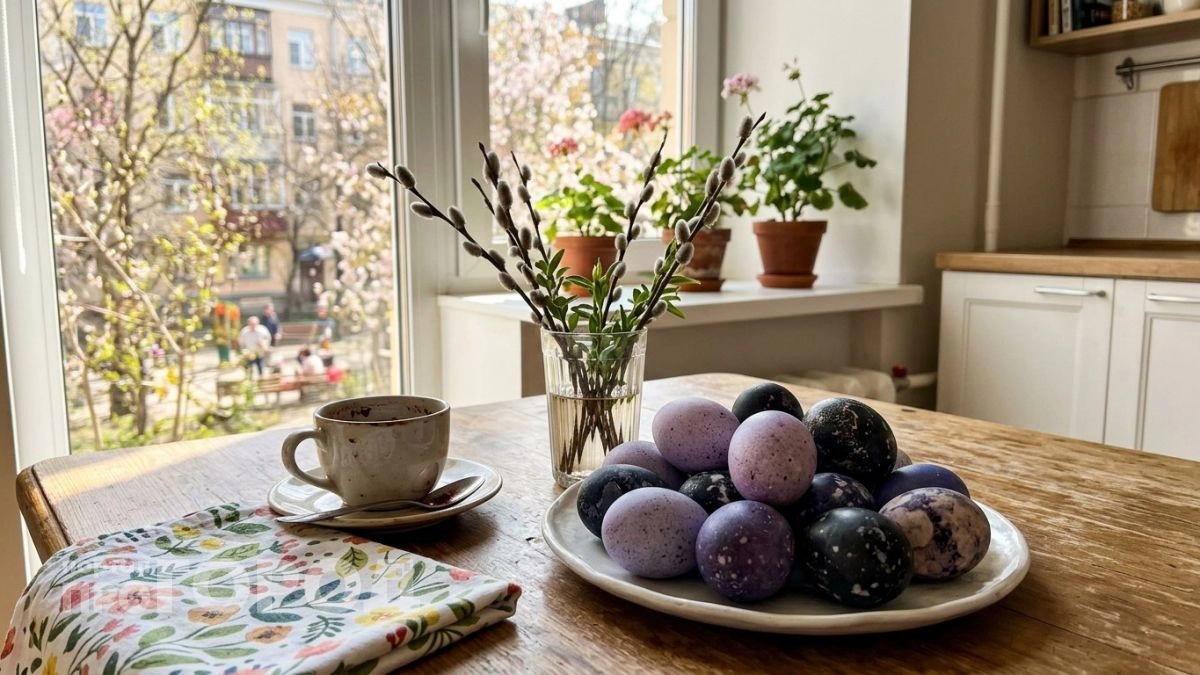 Пасха в 2026 году приходится на 12 апреля, и у хозяек осталось совсем немного времени, чтобы подготовить главный символ праздника — крашеные яйца. Те, кто хочет обойтись без пакетиков с химией из супермаркета, всё чаще обращаются к каркаде: сушёным лепесткам гибискуса, из которых заваривают кисловатый красный чай. Мало кто знает, что этот же напиток способен превратить обычное яйцо в нечто похожее на космический объект — от нежно-сиреневого до иссиня-чёрного, почти как галактика.